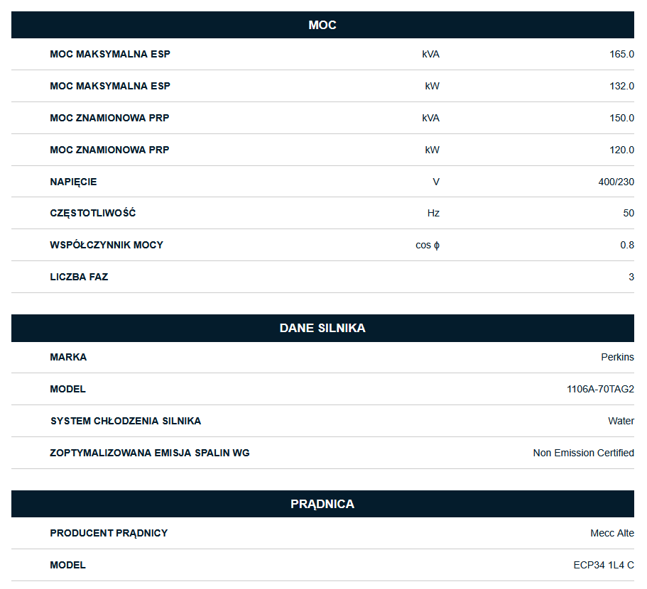 AGREGAT PRĄDOTWÓRCZY 3-FAZOWY PRAMAC GDW165P/FNE